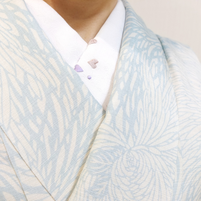 ご自身で刺繍を施したという半衿がポイントに